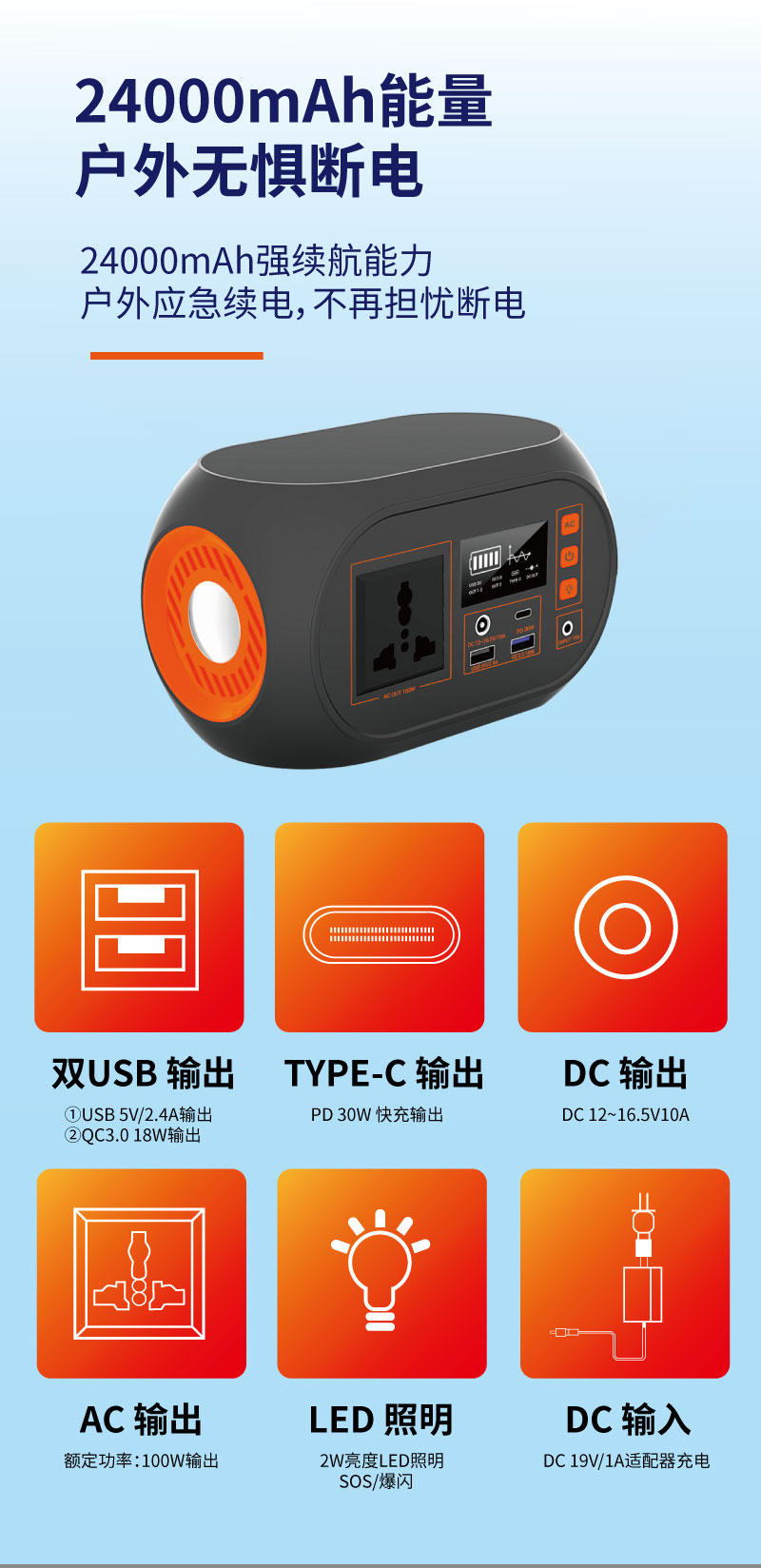 小容量戶外便攜應(yīng)急移動電源100W手機平板多功能儲能電源工廠批發(fā)