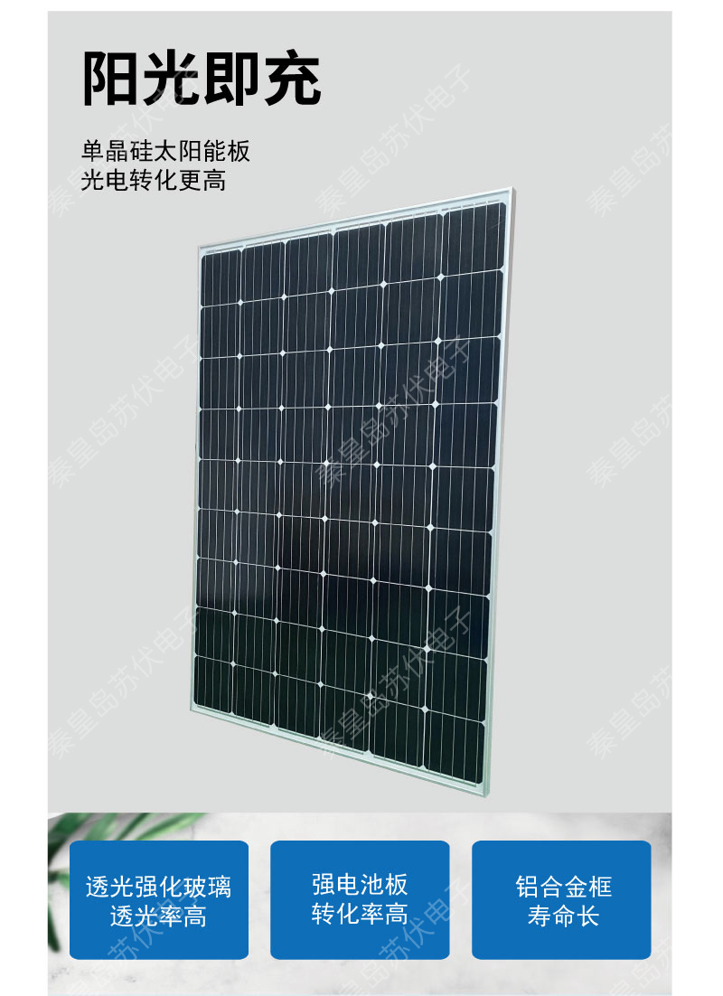 單晶硅太陽(yáng)能電池板鋁合金邊框單晶電池片210W家用照明工廠直供