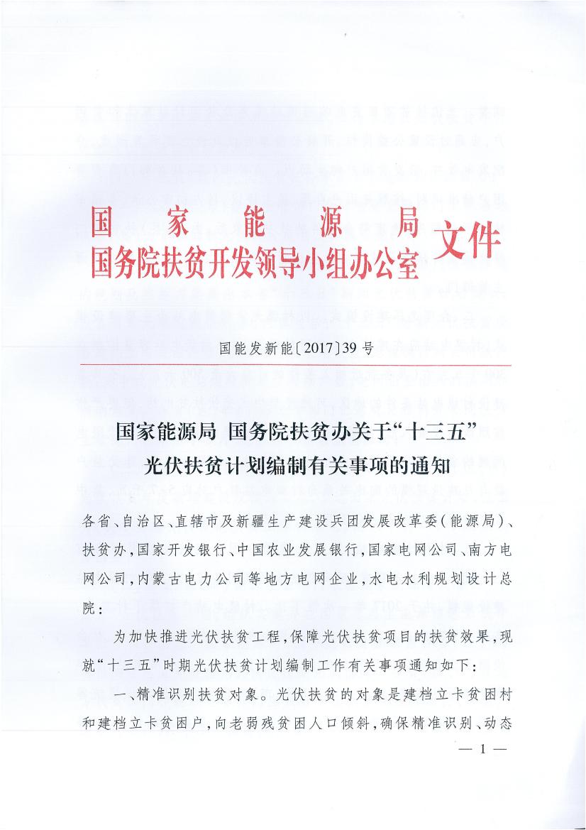國家能源局、扶貧辦關于“十三五”光伏扶貧計劃編制有關事項的通知